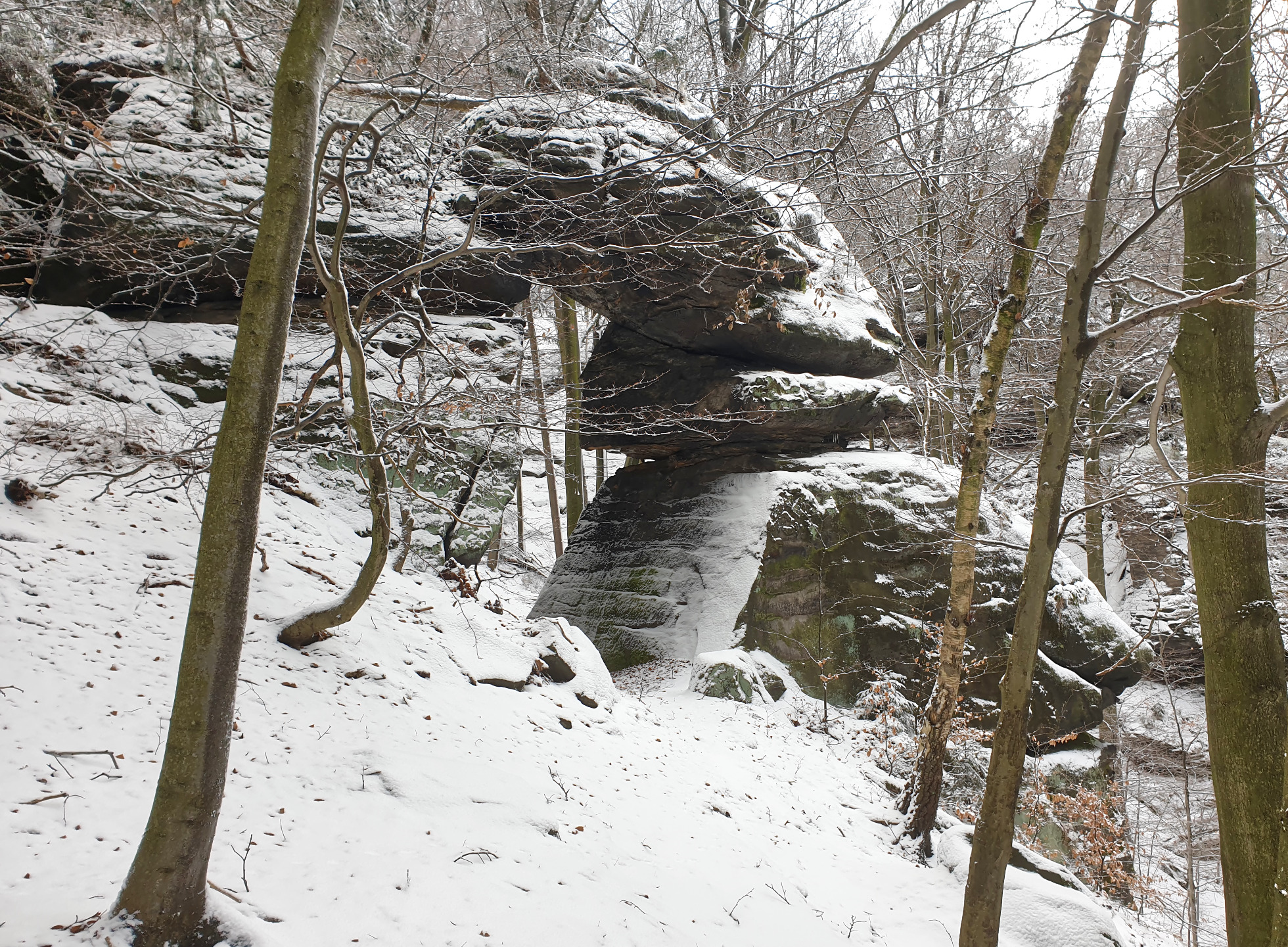 Blick auf Zirkelstein und Kaiserkrone mit den Zschirnsteinen im Hintergrund