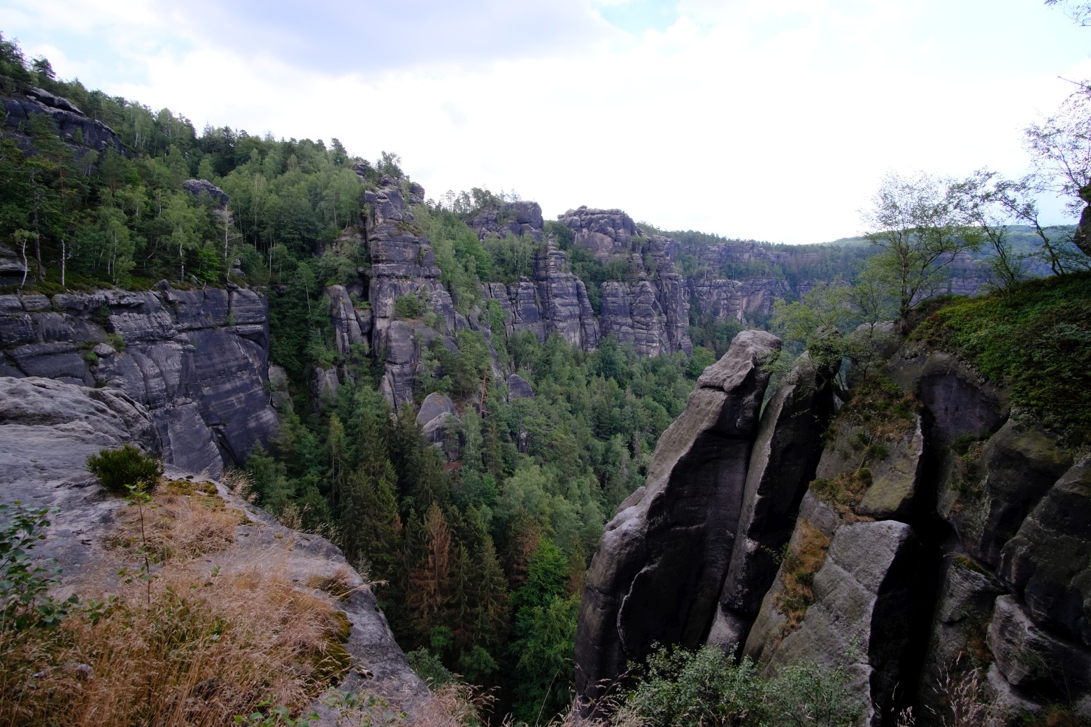 Der Ausblick vom Carolafelsen mit 458 ü. NN gehört zu den allerschönsten Plätzen in der sächsischen Schweiz. Hier hat man einen herrlichen Panoramablick auf die Schrammsteine, den Falkenstein und die Felsen der vorderen Sächsischen Schweiz.