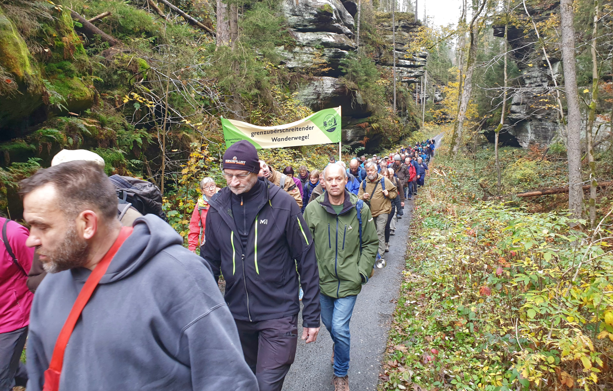 Protestwanderung für grenzüberschreitende Wanderwege
